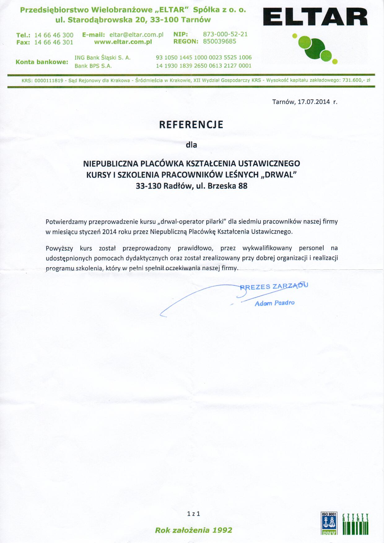 Referencje oraz ważniejsze dyplomy i zaświadczenia: