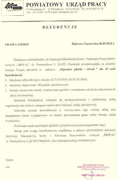 KURSY I SZKOLENIA PRACOWNIKÓW LEŚNYCH DRWAL